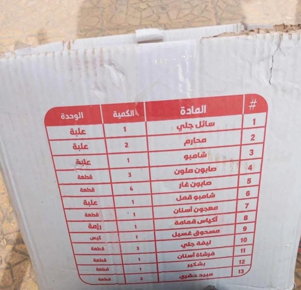 قبل أيام، توجهت إلى أحد تجار الجملة لشراء بضائع لبسطتي الصغيرة، وهناك عرض عليّ شراء بعض المواد الإغاثية بسعر منخفض جداً مقارنة بأسعار السوق. في الحقيقة، كان سعرها مغرياً ورخيصاً، وهذا ساعدني في تقليل جزء من ديوني المتراكمة. وجدت أنني أستطيع شراء كمية أكبر من البضائع بنفس المبلغ الذي كنت أخصصه عادةً، فقررت شراء نصف احتياجاتي منه.”